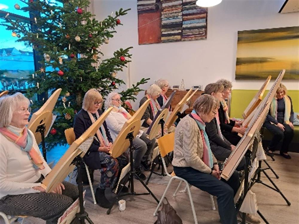 Die Musikerinnen des Ensembles Hospiz Velbert verwandelten den Gemeinschaftsraum mit ihren Veeh Harfen in einen Ort der Ruhe.